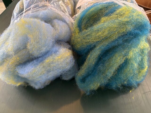 Soft Shetland fiber combined with mohair. Hand dyed gives vibrant colors. Great for spinning or felting